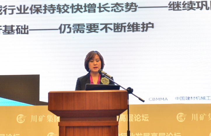 中國(guó)建材機(jī)械工業(yè)協(xié)會(huì)常務(wù)副會(huì)長(zhǎng)、全國(guó)建材裝備標(biāo)準(zhǔn)化技術(shù)委員會(huì)秘書(shū)長(zhǎng)王玉敏作題為《建材機(jī)械行業(yè)發(fā)展及轉(zhuǎn)型思考》的演講